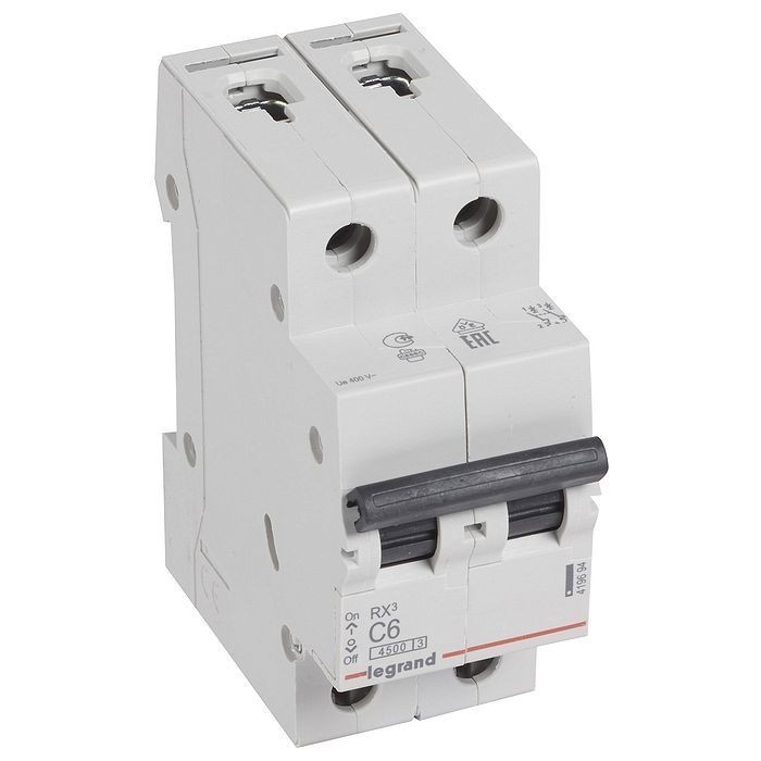 Автоматический выключатель Legrand RX3 2P 6А (C) 4,5кА, 419694